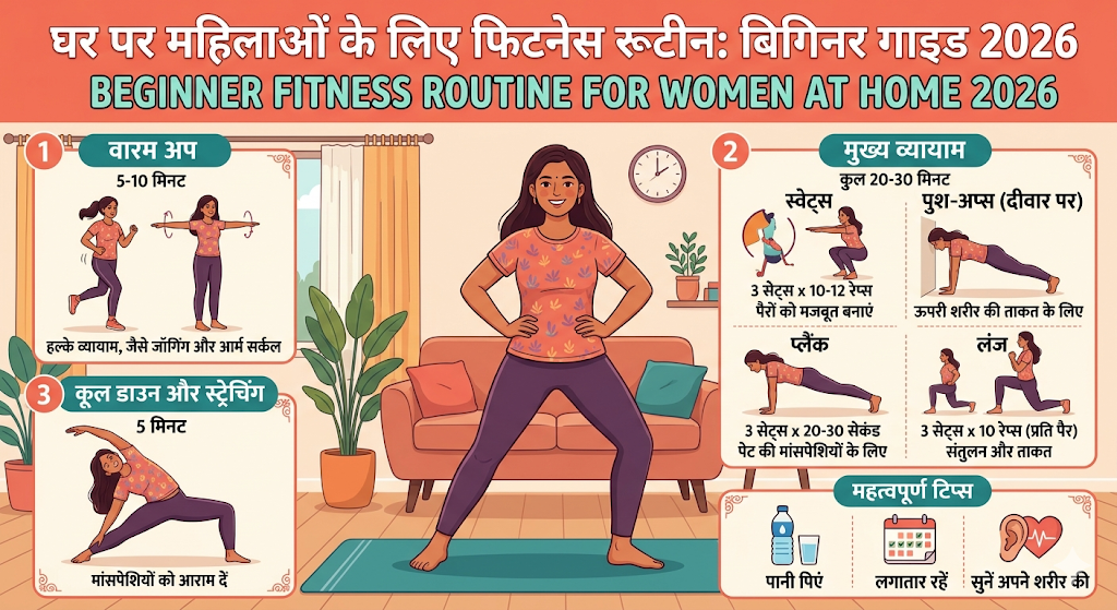 घर पर महिलाओं के लिए आसान फिटनेस रूटीन जानें। यह beginner guide आपको बताएगा कि बिना जिम जाए कैसे फिट और हेल्दी रहें।